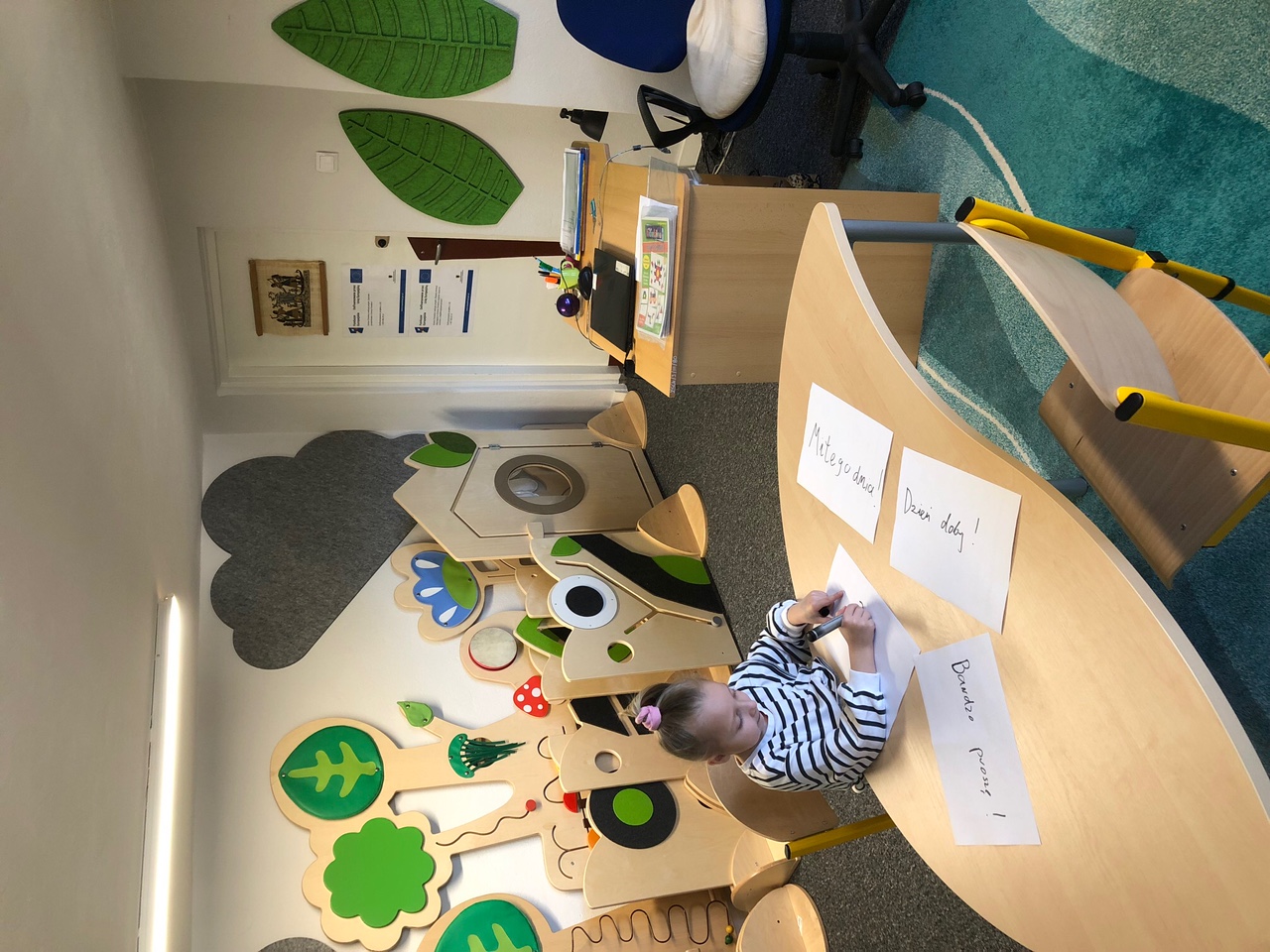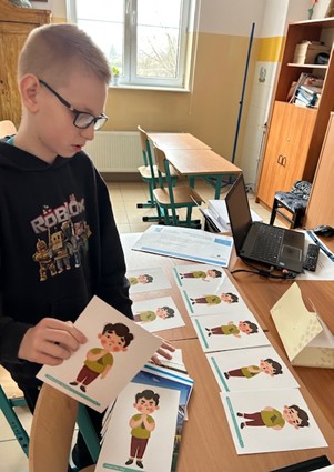 i treści. Zajęcia prowadzimy za pomocą urozmaiconych form nauczania np. gier i zabaw, dzięki którym nauka staje się przyjemnością. Nasi uczniowie podczas zajęć korzystają także z nowo zakupionych, innowacyjnych pomocy edukacyjnych.